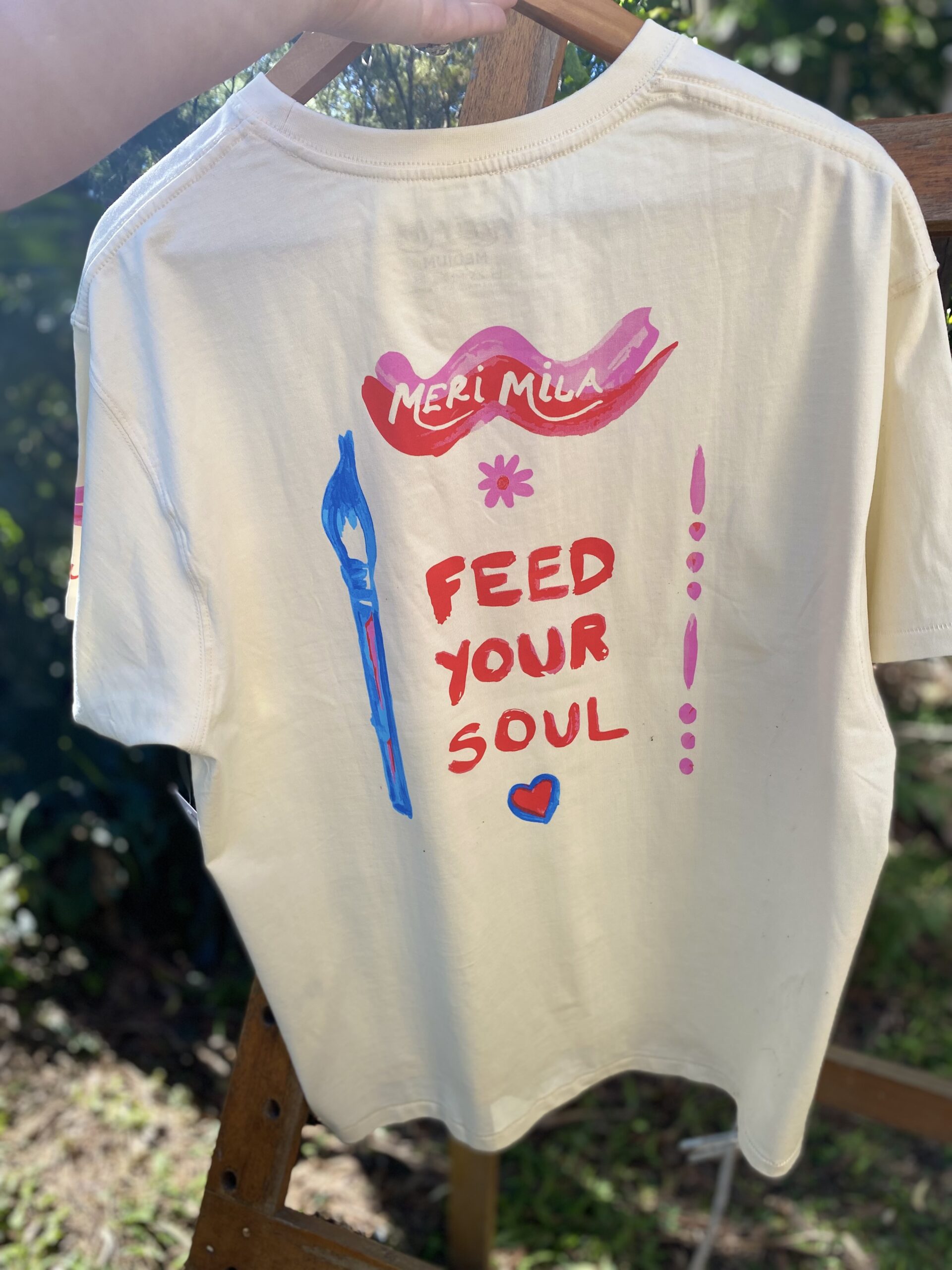 - Original paintings as large front and back print and small sleeve print